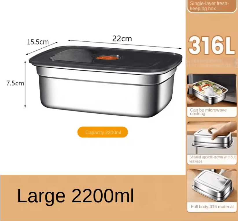 Stainless Steel Leak Proof Bento Lunch Box For Meal Prep And Food Storage 2200ml