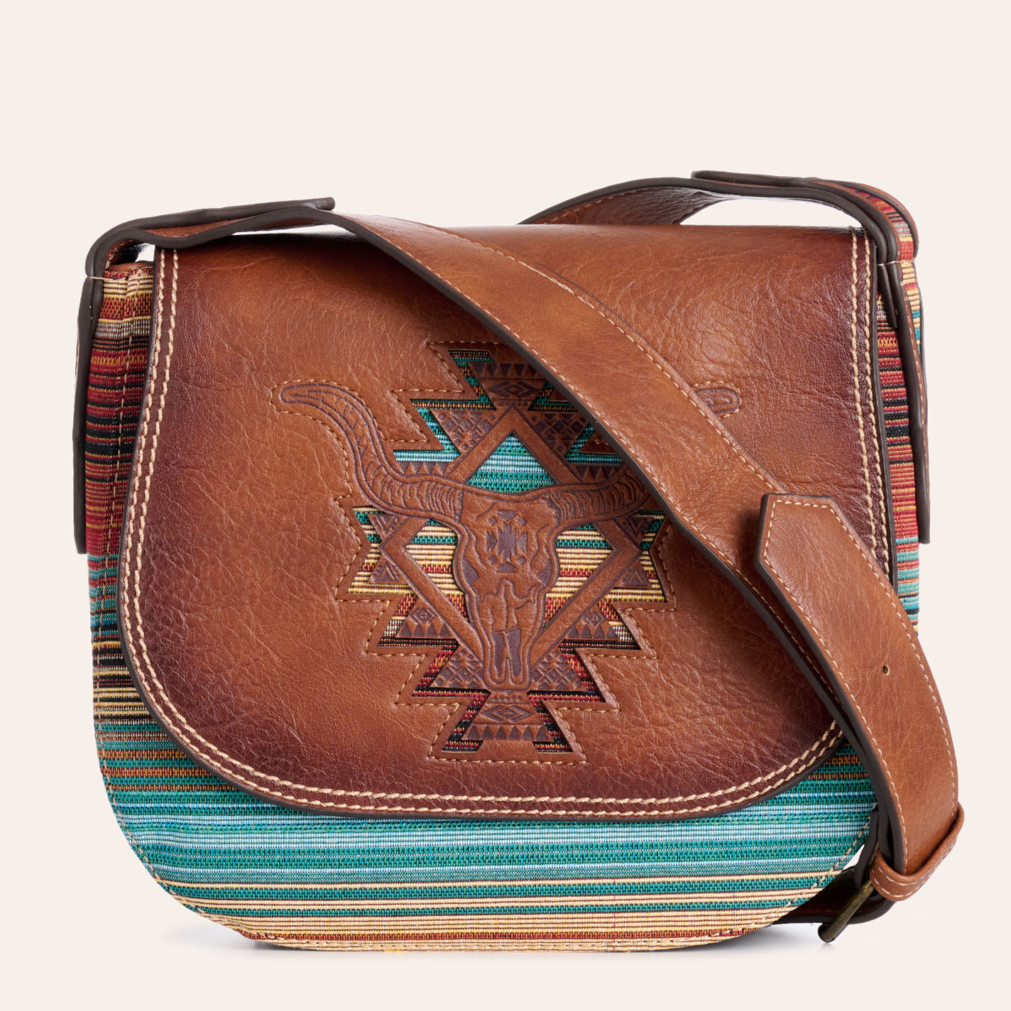 Catchfly Multicolor Serape Print & Brown Leather Crossbody Saddle Bag - NOSZ - From Cavender's - Women's