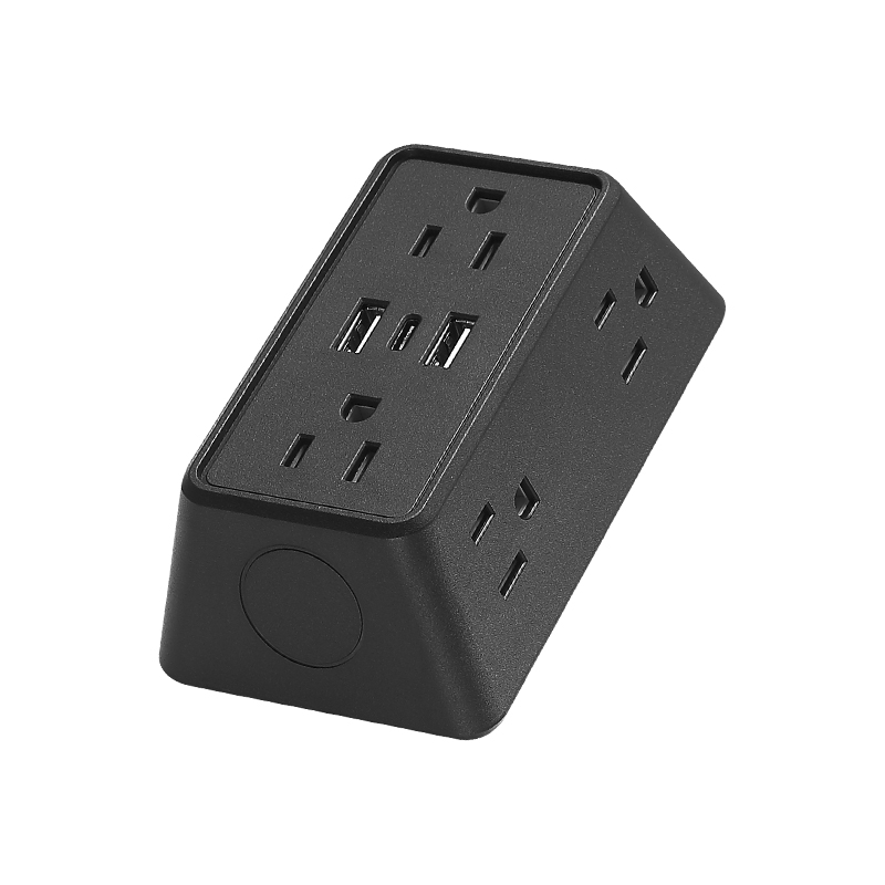 Cube Wall Socket Extender With USB And Type C Charging black Power Strip