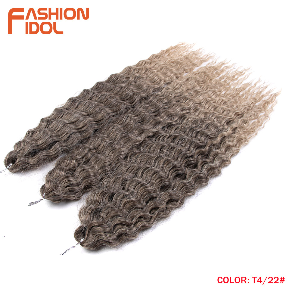 Ariel Hair Water Wave Crochet Braids, Synthetic Twist Curly Hair Ombre Blonde Brown Deep Wave Braiding Hair Extensions t4 22 24inches 60cm