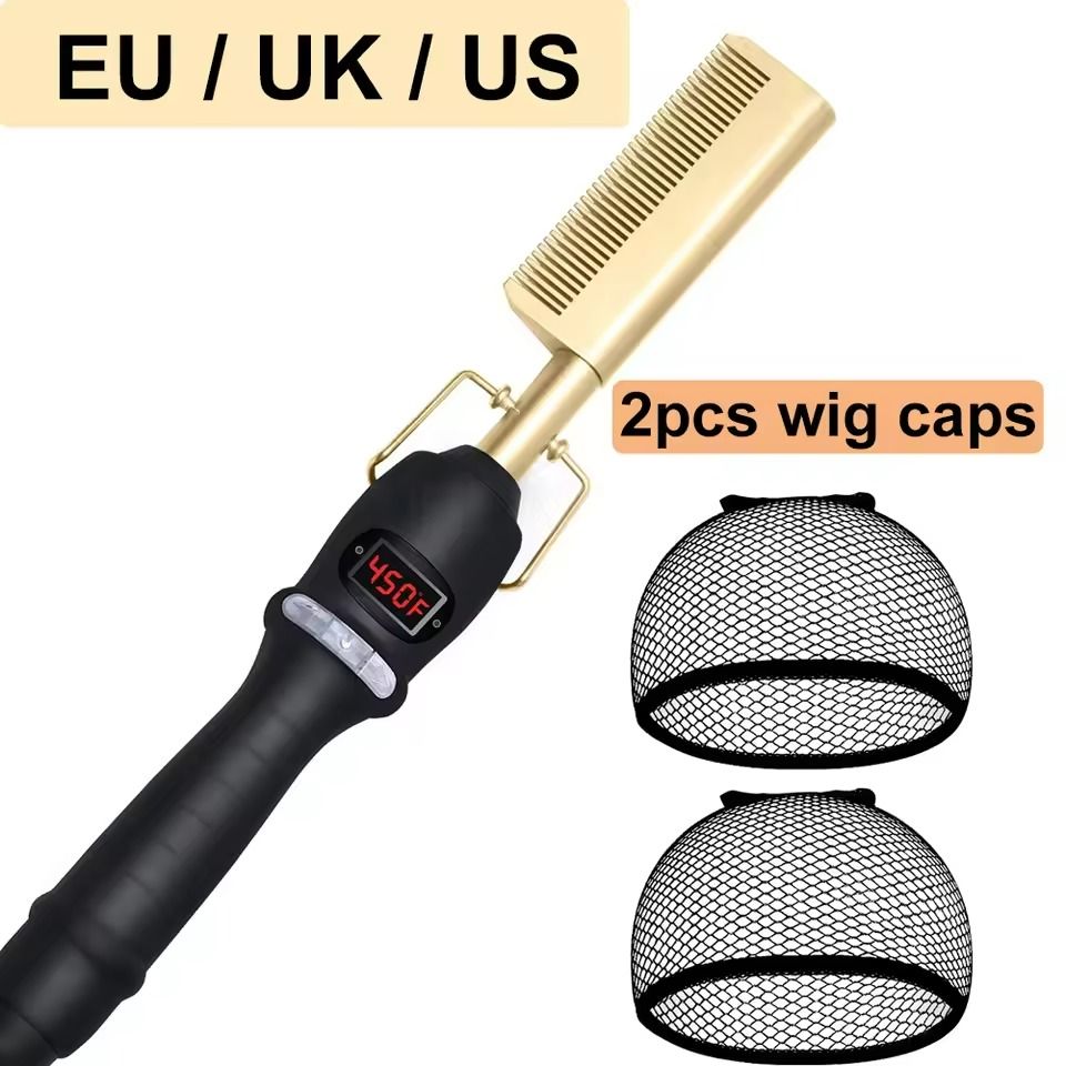 Electric Heating Curling Comb For Dry And Wet Hair With Straightening And Styling Function 3pcs Gold us