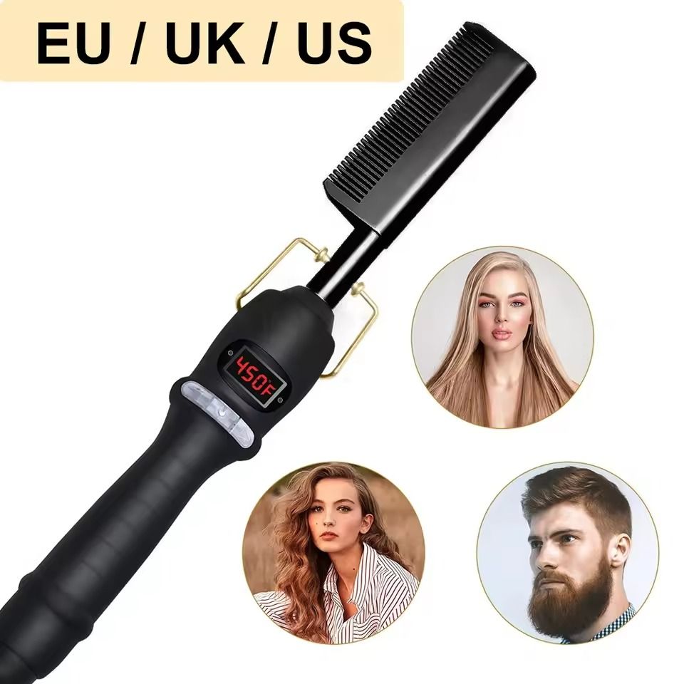 Electric Heating Curling Comb For Dry And Wet Hair With Straightening And Styling Function 1pc Black us