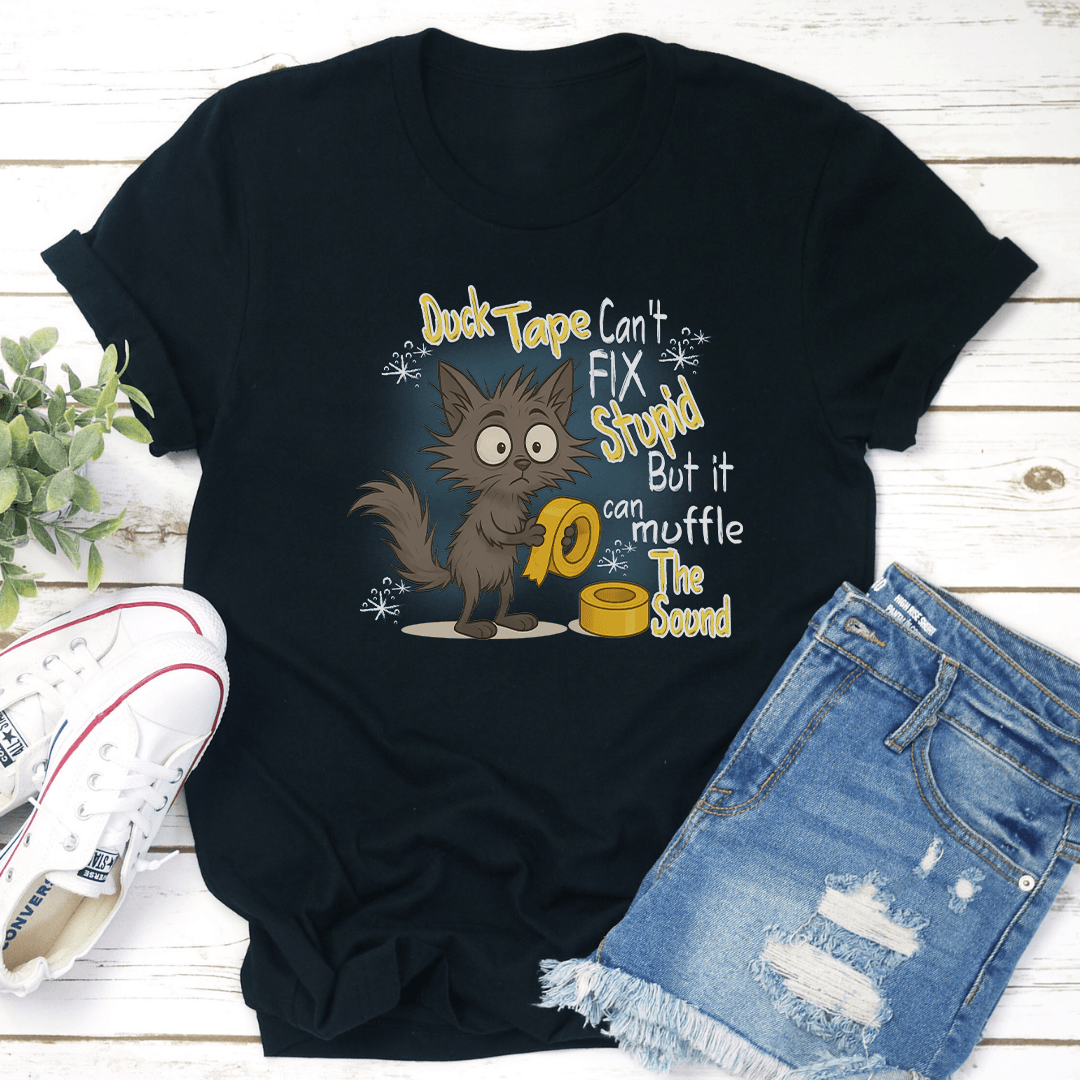 Duck Tape Cant Fix Stupid But It Can Muffle The Sound Tee L Black Heather