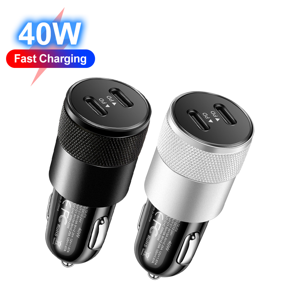 Mini Car Charger USB C, Phone Adapter For IPhone, Samsung, HUAWEI, Xiaomi Mobile Phones silver