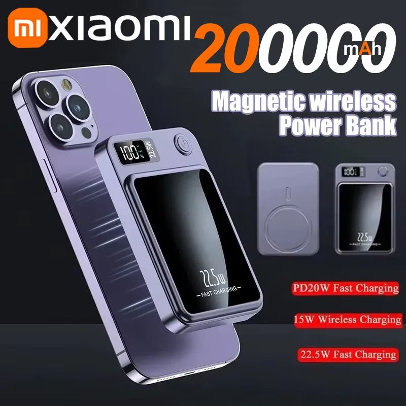 Xiaomi 20000mAh Magnetic Power Bank Wireless Fast Charger For IPhone, Samsung & Huawei purple 50000mah