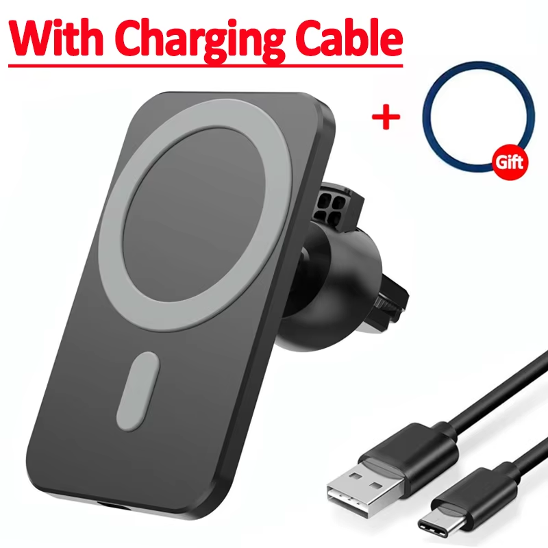 Magnetic Car Charger For IPhone, Wireless Charging Station With Secure Vent Clip, Compatible With MagSafe IPhone 12 15 black With Cable
