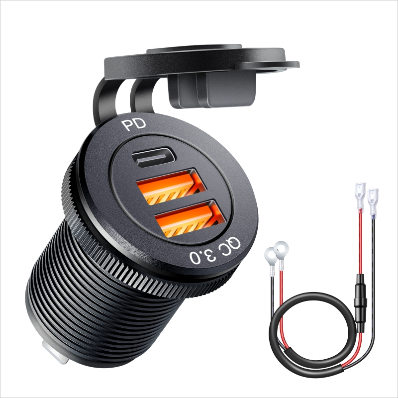 Quick Charge PD Car USB Socket Outlet Waterproof Charger For Auto Truck Motorcycle Marine Boat, Aluminum Power Socket 1pd2qcor