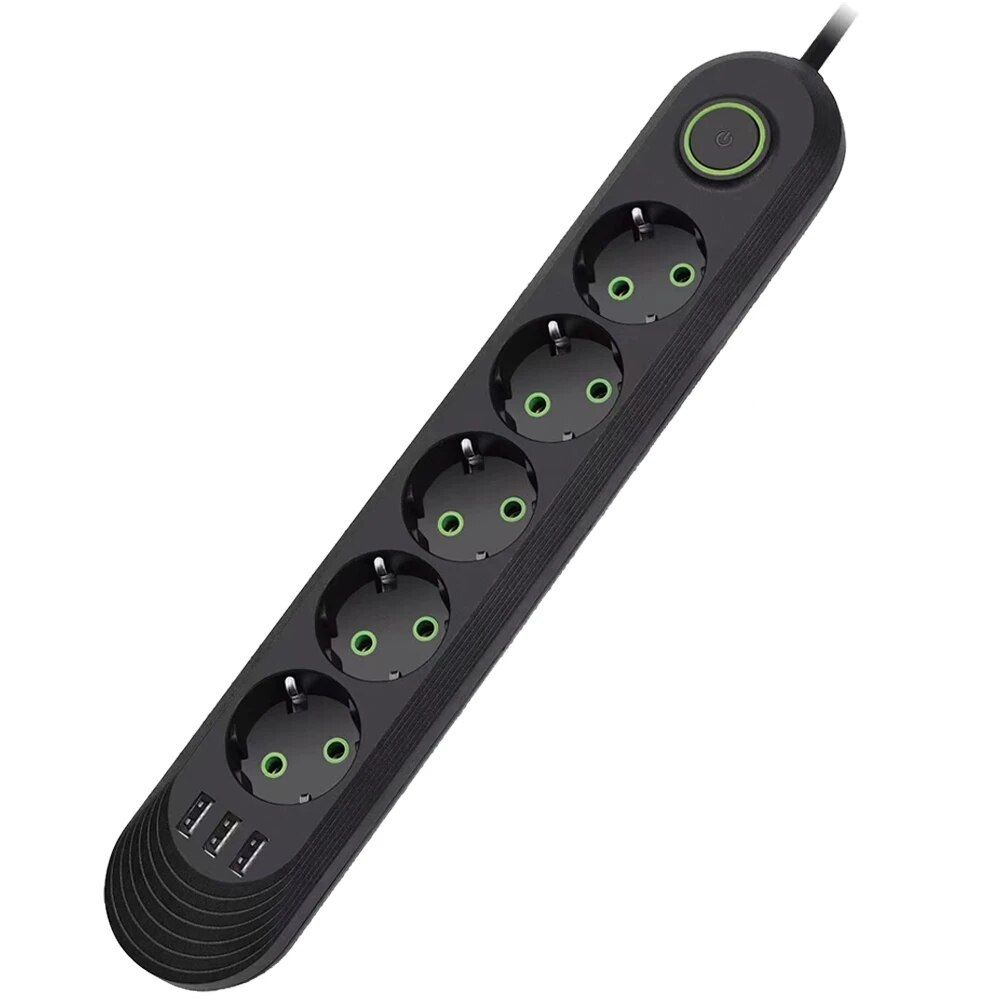 2500W Power Strip With AC Outlet & USB Ports, Multiprise Extension Cord, Fast Charging & Surge Protection black 3
