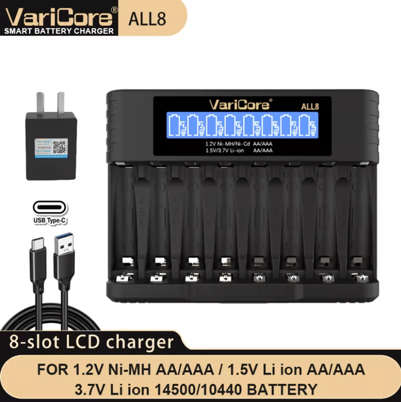 VariCore LCD Fast AA AAA Battery Charger 8 Slot Universal Rechargeable Battery Charger all8 5v2a au