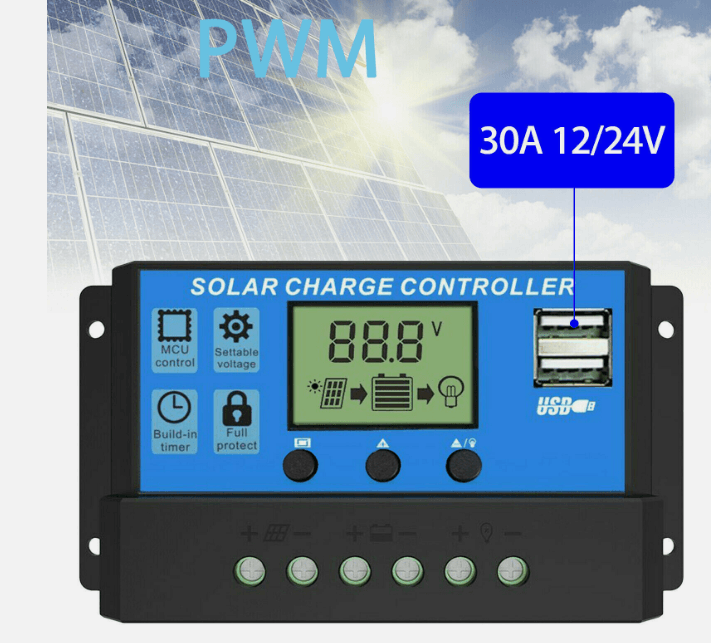 MPPT Solar Charge Controller, Auto Focus Tracking Regulator With LCD Display For Solar Panel System Battery Charging 30a