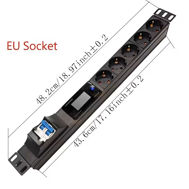 19 Inch Rack Mount PDU Power Strip With Voltmeter Ammeter Wattmeter EU US UK Plug Options 16A 32A 4000W 8000W eu Socket 16a 4000w