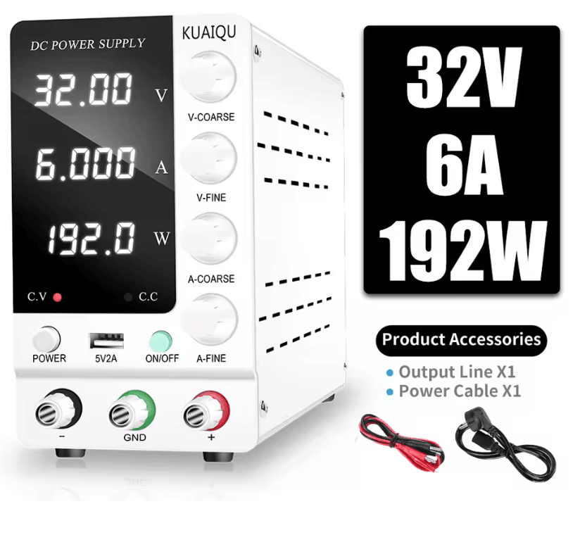 KUAIQU Adjustable DC Power Supply With USB Interface 30V 10A, 60V 5A, 120V 3A Lab Bench Supply white 32v6a ac 110v