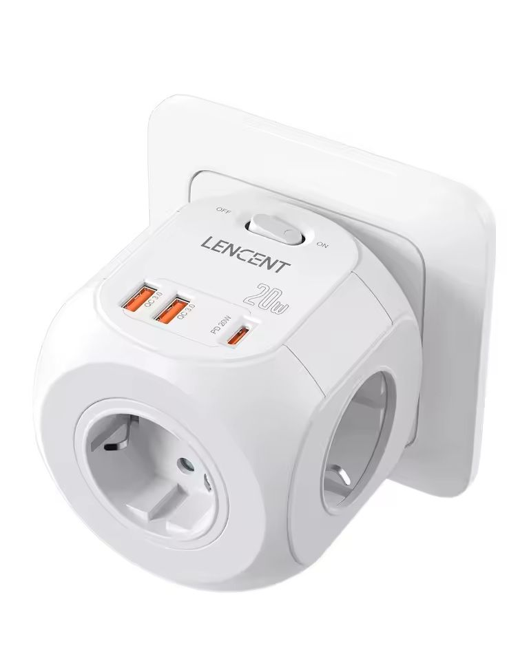 PowerHub 7 in 1 Wall Socket Extender EU Plug With 3 AC Outlets, 3 USB Ports, And Type C Fast Charging pd20w 4ac 2u1c eu Plug
