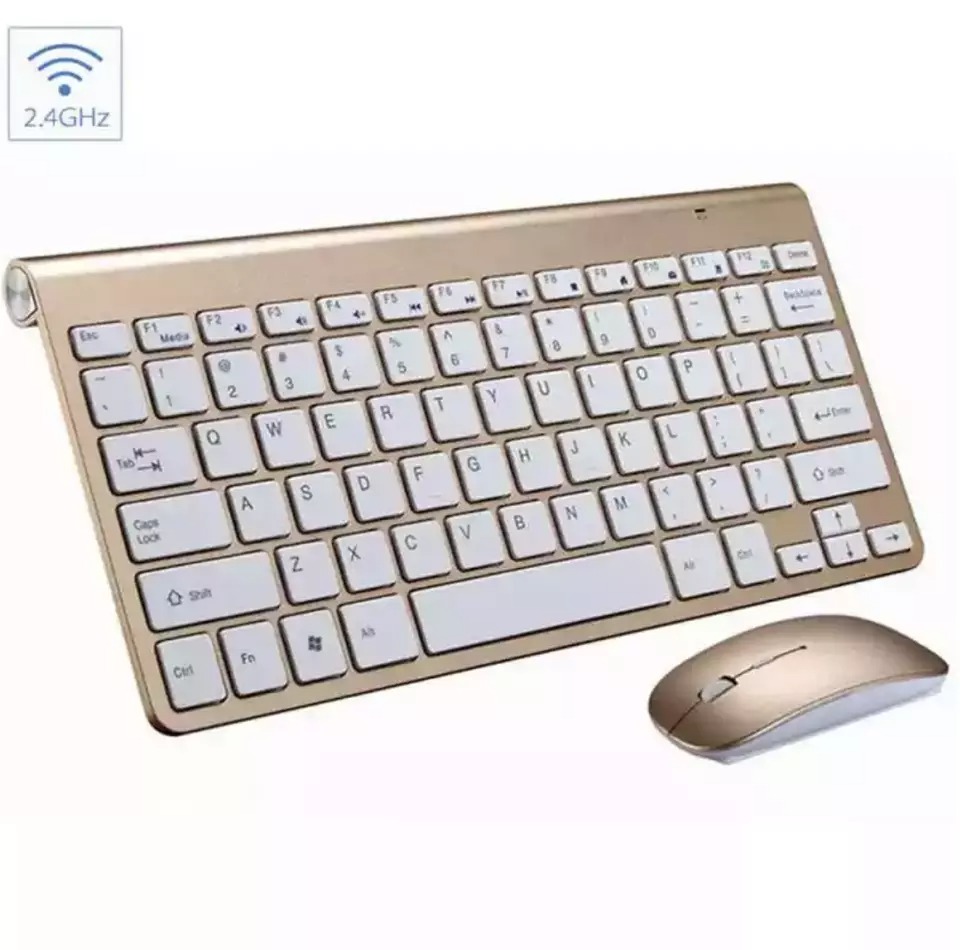 Mini Wireless Keyboard And Mouse Set, Waterproof For Mac, Apple & PC gold