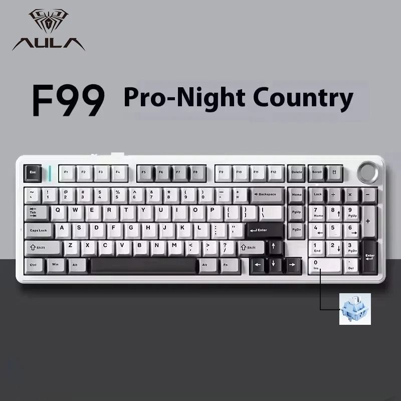 AULA F99PRO Wireless Mechanical Gaming Keyboard With Knob And Hot Swappable Gasket Mount grey And White 2