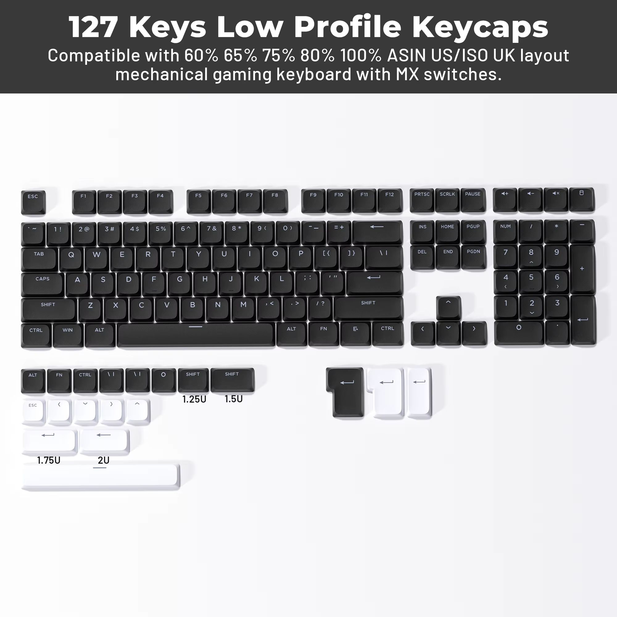 XVX BOW Skyline R2 Low Profile Keycap Set 127 Key Shine Through Double Shot PBT Keycaps For ANSI Layout Mechanical Key black